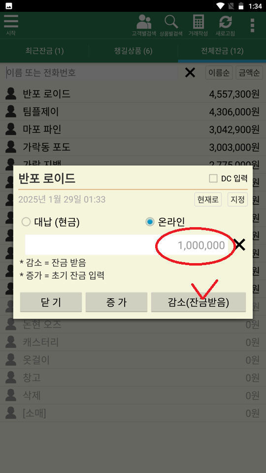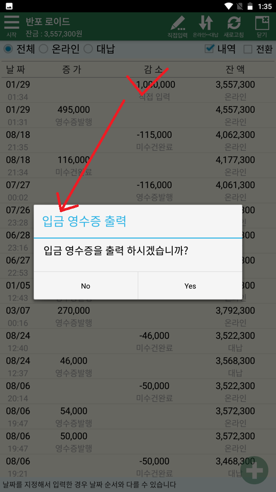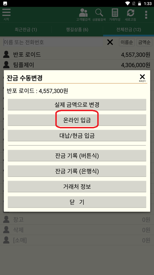 잔금과 관련해서 고객은 크게 두 부류입니다. 영수증별로 입금 (ex. 지난번 영수증 35만원 입금) – (보기) 그때 그때 조금씩 입금 (ex. 그냥 50만원, 100만원씩 입금) – (보기) 이번 가이드는 조금씩 입금하는 경우입니다. 1 . 받은 금액 입금 처리 전체잔금 > 거래처이름 입력 > 거래처 클릭 온라인으로 입금 처리 (대납이면 대납/현금으로) 이번에 받은 금액 입금 처리 입금으로 잔금이 감소함 2 . 영수증(입금증) 출력 이 글 공유하기: 클릭하여 X에서 공유 (새 창에서 열림) X 페이스북에 공유하려면 클릭하세요. (새 창에서 열림) Facebook 좋아하기 가져오는 중...