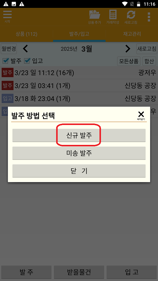 많은 상품을 신규 발주를 하다보면 원하는 상품을 찾기 어려울 수 있습니다. 빠른 입력을 위해 상품을 다음 순서로 정렬할 수 있습니다.