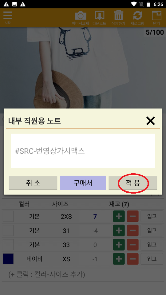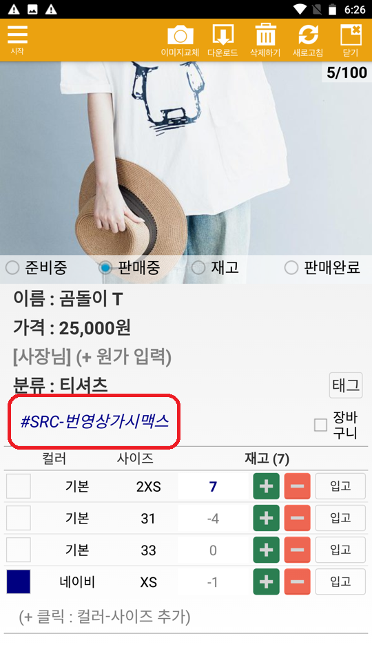 #SRC- 뒤에 사입처가 표시됩니다. 이 정보는 발주서에 표시할 수 있습니다.
